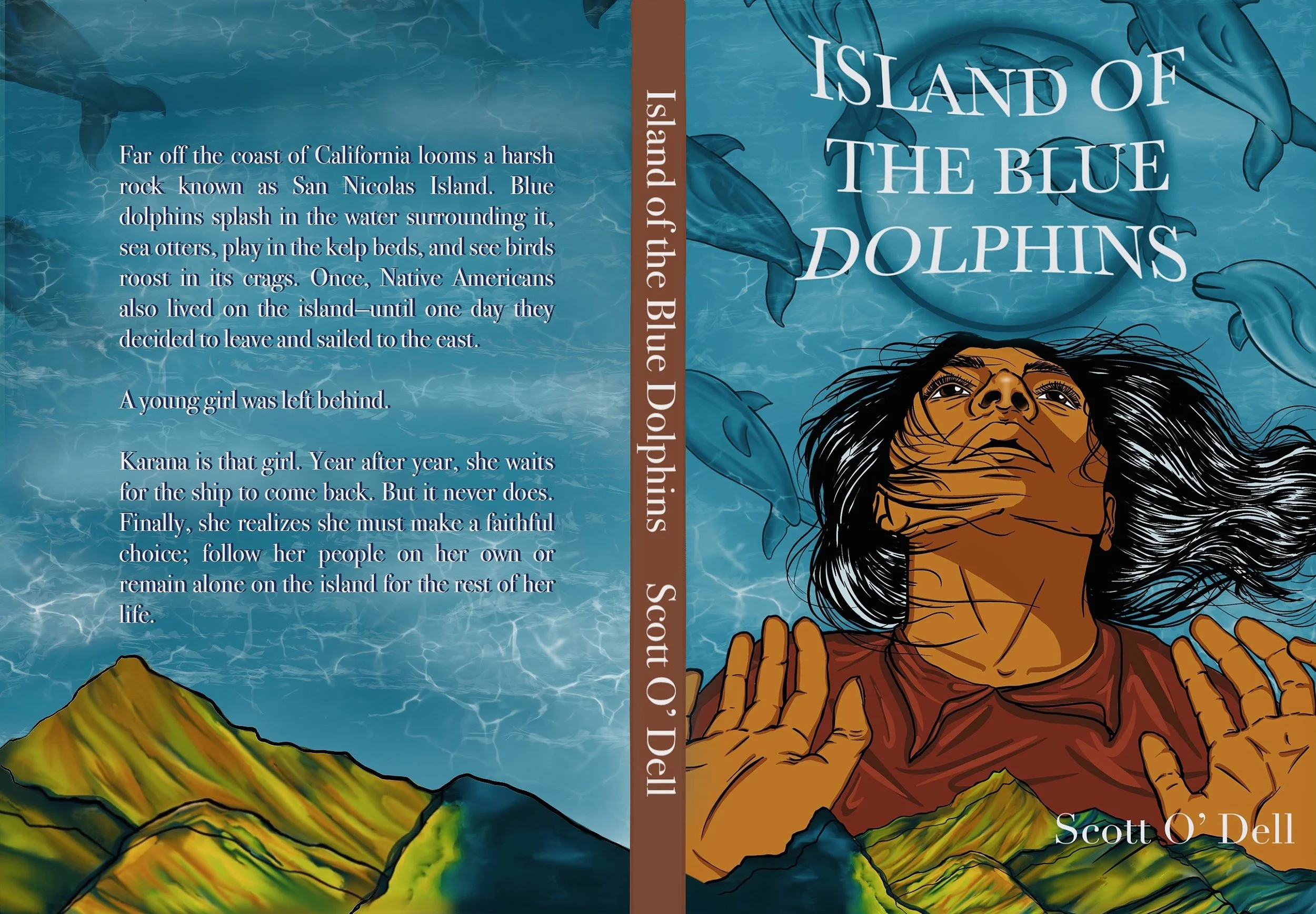Concept book cover illustration of Island of the Blue Dolphins by Scott O’ Dell.